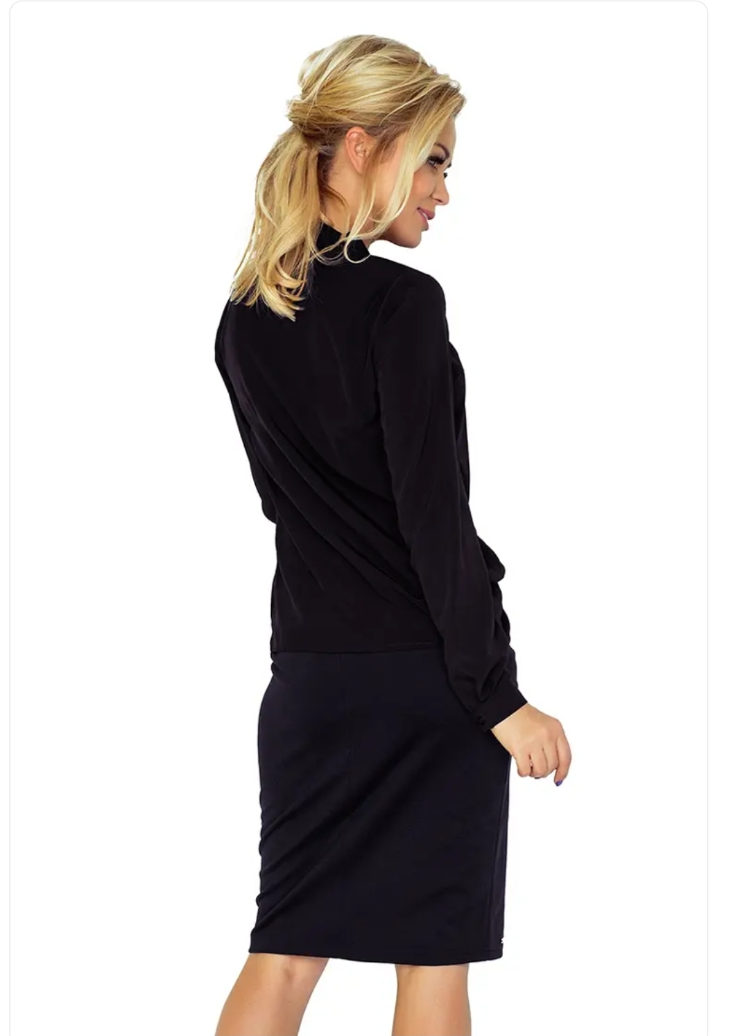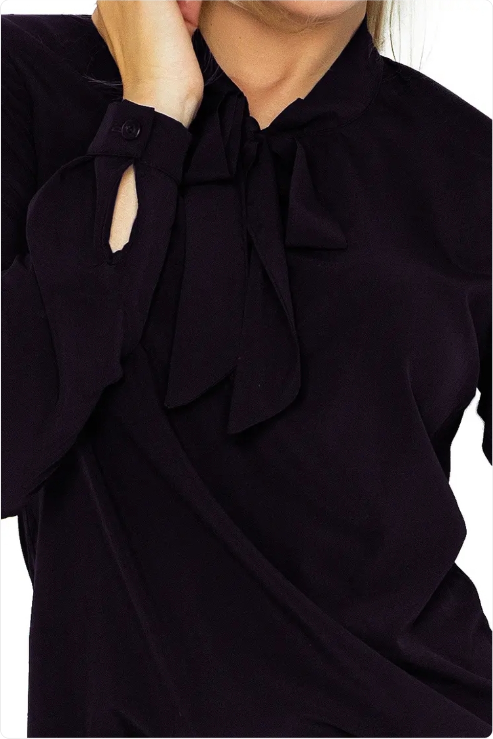Chemisier noir Numoco 140-5 avec cordon intégré. Design élégant et moderne, marque polonaise. Disponible XS à XXL. Livraison gratuite, retours 14 jours. Découvrez chez Dropvet.