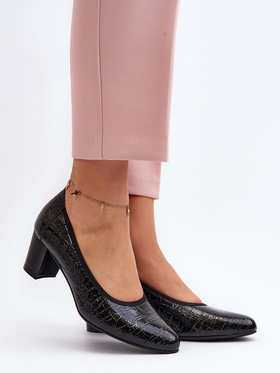 Adoptez une élégance sûre et confortable avec ces escarpins à talon bloc, pensés pour accompagner vos journées au bureau comme vos sorties en ville. Leur silhouette classique est modernisée par un bout en amande chic et un embossage décoratif finement travaillé sur l’empeigne. La semelle intérieure en cuir naturel apporte un confort supérieur, tandis que le talon bloc de 5,5 cm garantit une stabilité rassurante à chaque pas.